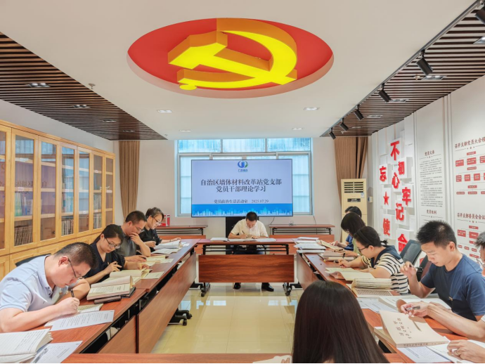 全站党员干部集中研读了《习近平生态文明文选》《习近平关于广西工作论述摘编》等内容,围绕“广西生态优势金不换”的重要嘱托开展交流。大家一致表示,要把学习成果转化为推动美丽广西建设的强大动力,立足本职工作着重在绿色新墙材推广、墙改节能减排、装配式建筑发展等方面持续发力,擦亮广西生态“金字招牌”。