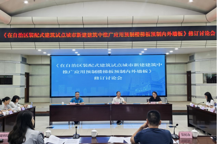 2025年8月8日,自治区住房城乡建设厅在南宁市组织召开《在自治区装配式建筑试点城市新建建筑中推广应用预制楼梯板预制楼板预制内外墙板的通知》(以下简称《通知》)修订讨论会,研究讨论《通知》修订的思路和内容。自治区住房城乡建设厅相关处室、厅属有关单位以及广西装配式建筑发展促进会相关负责人参加会议。